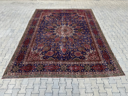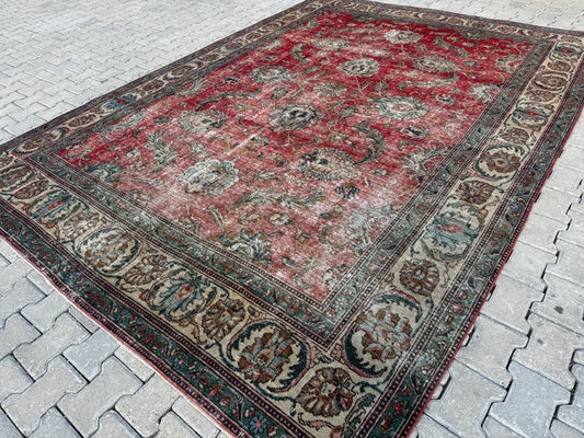 Persian Tabriz Rug 8x12 - Hand-Knotted Floral Design, Vintage Red Carpet | sku1205