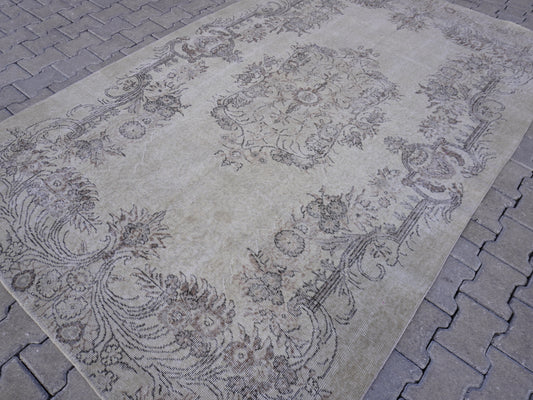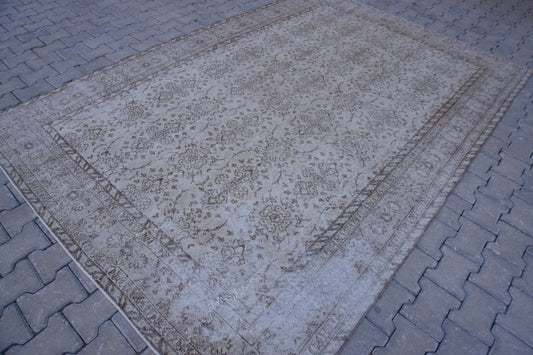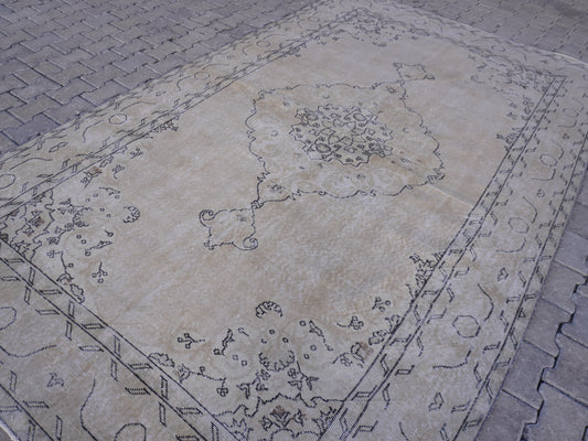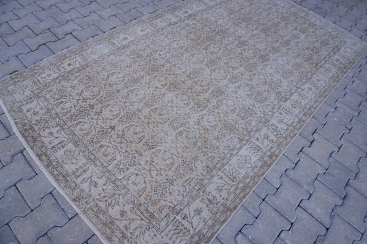 Vintage Neutral Wool Rug 7x10 ft - skuf174