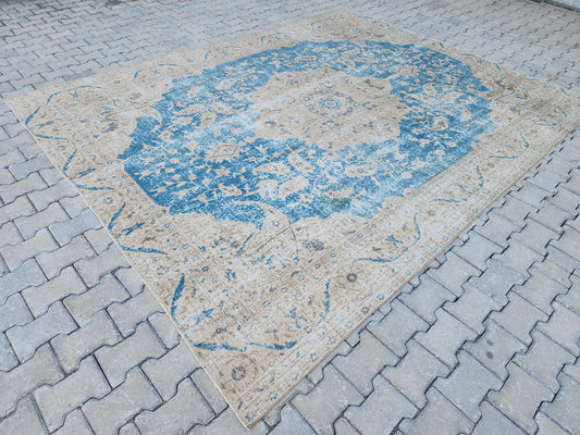 Blue Beige Vintage Rug 9x12 ft - sku1271