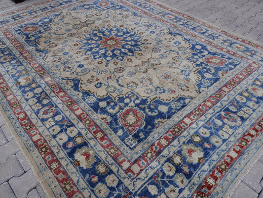 Beige Blue Vintage Rug 8x11 ft - sku1607