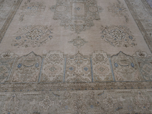 Neutral Heriz Design 10x13 ft , Hand-Knotted Vintage Rug, Persian Tabriz Rug | sku1564