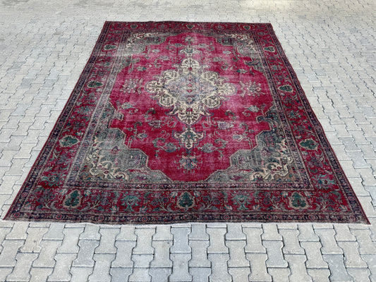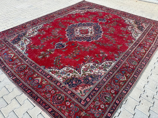 Hand-Knotted Persian Tabriz Rug 10x13 ft- Medallion Design, Vintage Red Carpet | sku1208