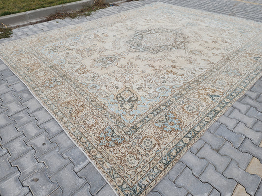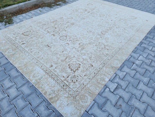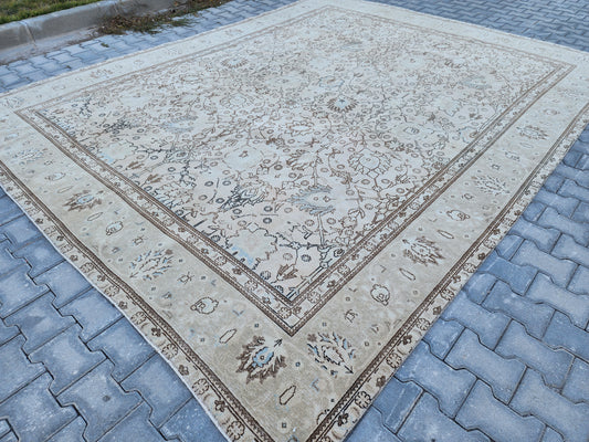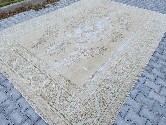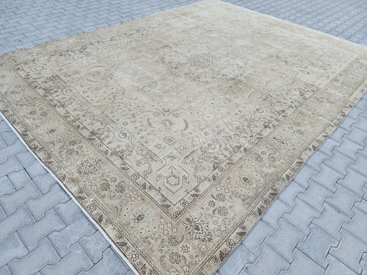 Wool Neutral Vintage Oversize Rug 9x12 ft - skua210