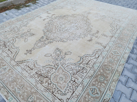 Wool Beige Vintage Large Rug 9x12 ft - skua206